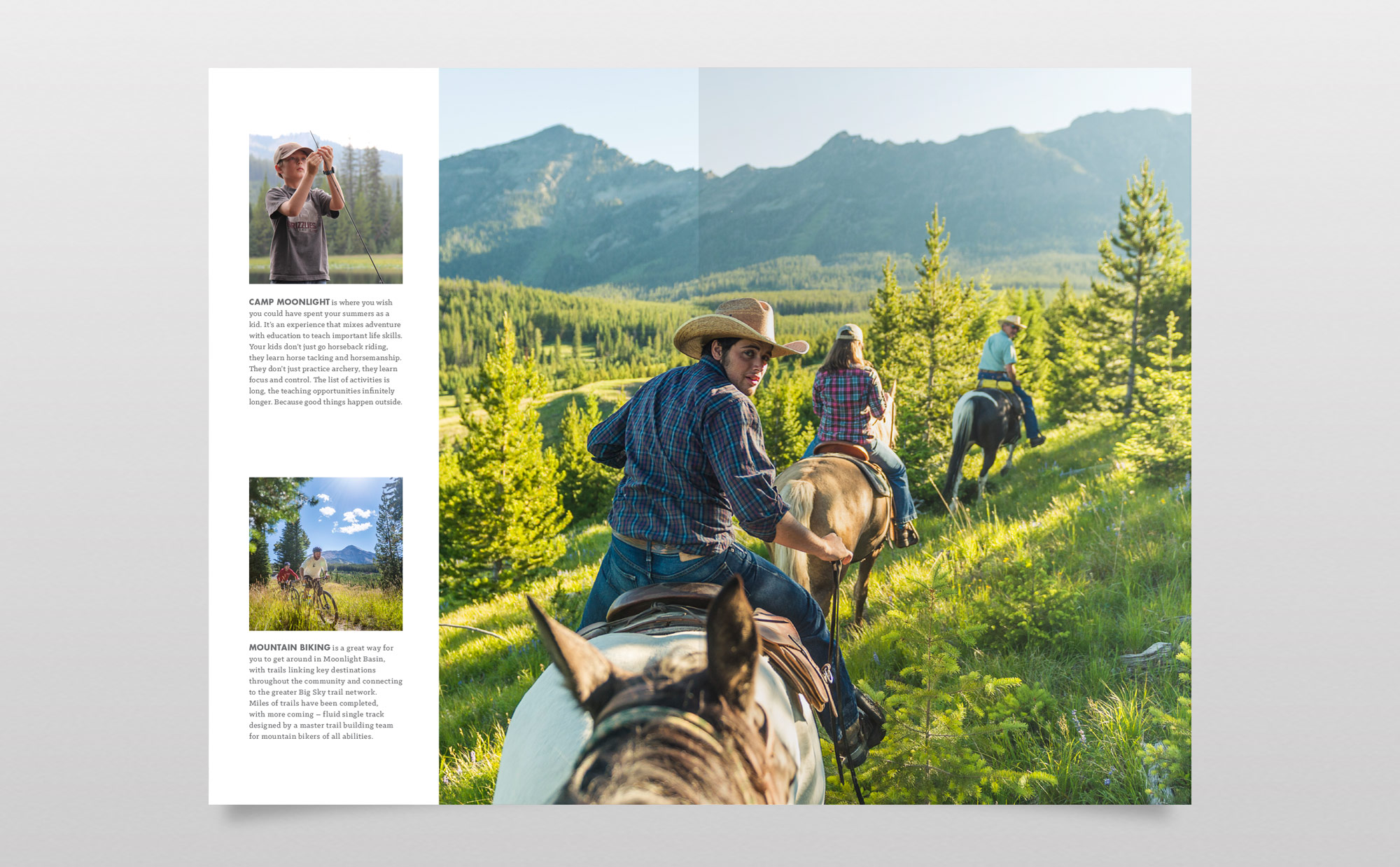 Outdoor time is linked to mental and physical health – lowering stress, improving mood, and even strengthening the immune system. More people than ever are recognizing the need to unplug, reconnect with the natural world and reconnect with each other. Choosing the real over the virtual, and seeking experiences over material possessions, while bringing their lives back into balance. Nowhere is there a stronger antidote to modern urban angst than among wild meadows, towering forests and glowing snowcapped peaks of Montana … it’s good for your soul. This insight helped Strada craft a brand story for Lone Mountain Land Company, owner and developer for sister brands Spanish Peaks Mountain Club and Moonlight Basin in Big Sky, Montana. The strategy was to promote Big Sky to potential second-home buyers as a high-end travel destination with an outfitter mentality. In other words, wild is the new luxury.